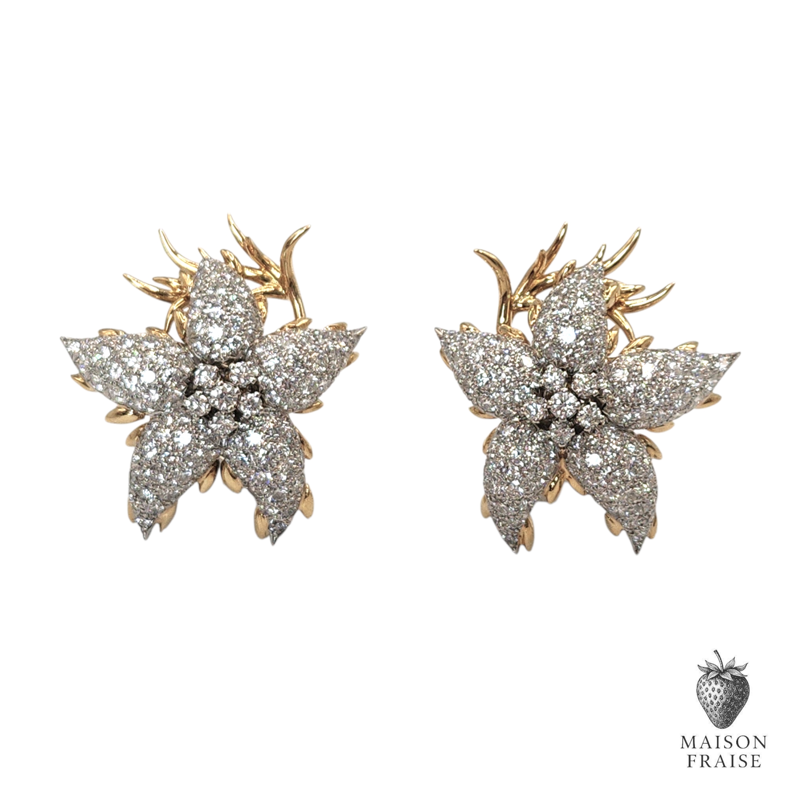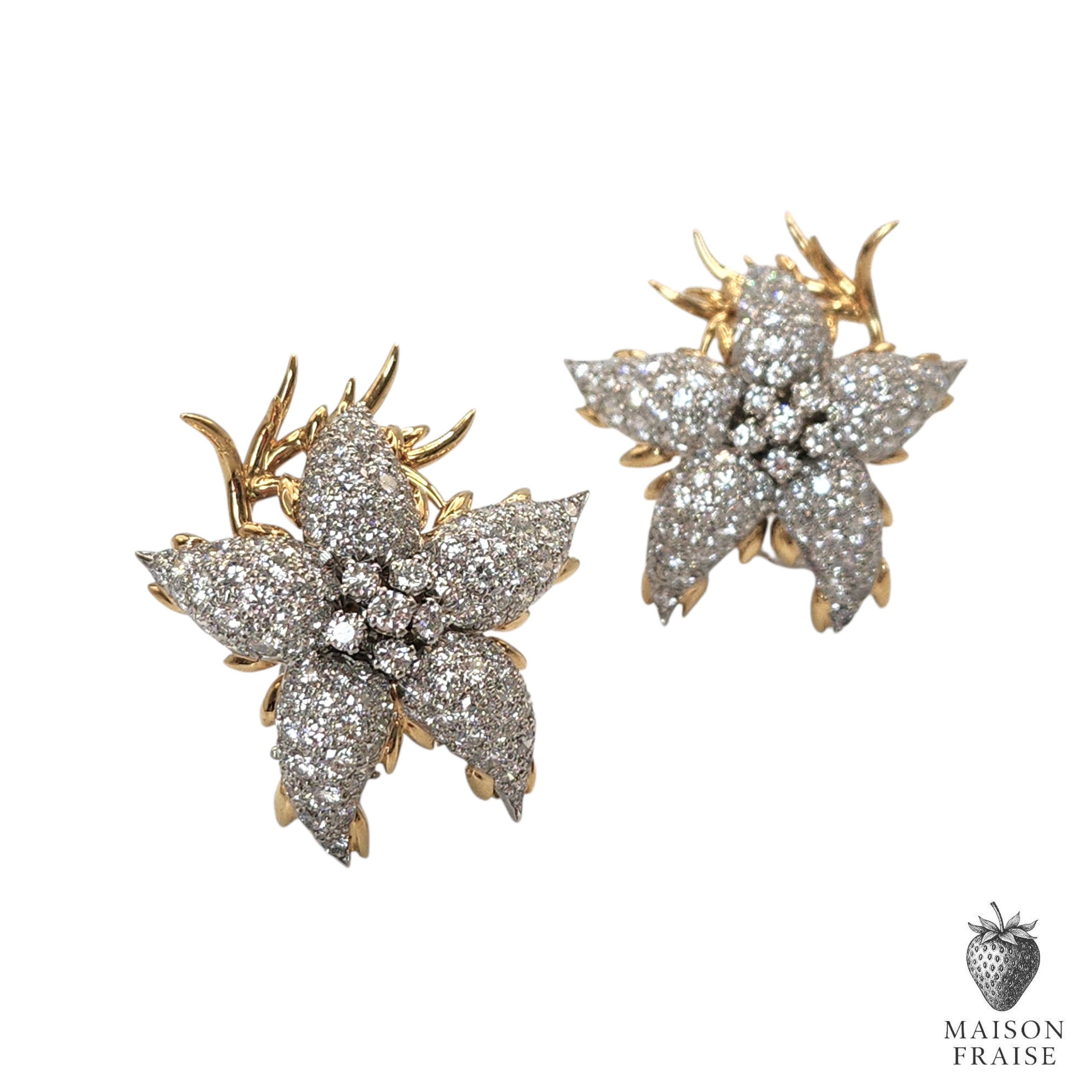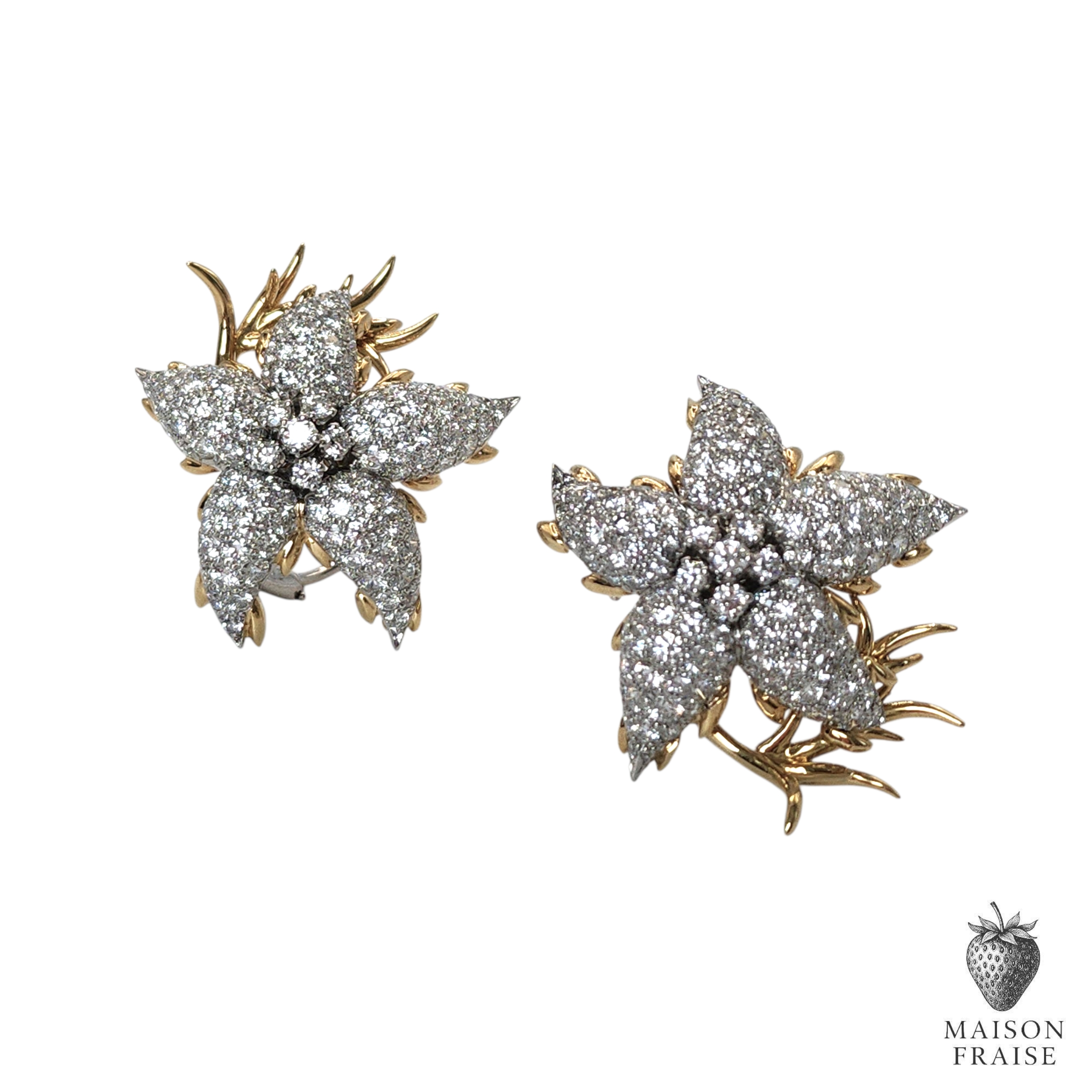 Signed Schlumberger Studios and stamped Pt950 and Au750, they feature approximately 7.44 carats of round brilliant diamonds. Elegant and full of character, these earrings are more than just beautiful — they’re works of art from one of the 20th century’s most imaginative jewelry designers. A rare and collectible pair, perfect for a true connoisseur.