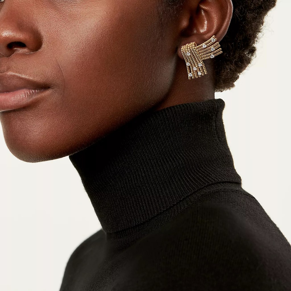 An embodiment of movement, texture, and light, these exquisite V-Rope ear clips by Jean Schlumberger showcase the designer’s mastery of form and detail. Crafted in 18k yellow gold, the sculptural twisted ropes cascade in a dynamic V-shape, accented with brilliant-cut diamonds that shimmer like scattered stars. Playful yet elegant, these ear clips reflect Schlumberger’s signature balance of bold design and delicate craftsmanship: Timeless pieces destined to captivate collectors and connoisseurs alike. Jean Schlumberger’s visionary creations are among the world’s most intricate designs. Illuminated by brilliant diamonds, this timeless design makes a striking statement.